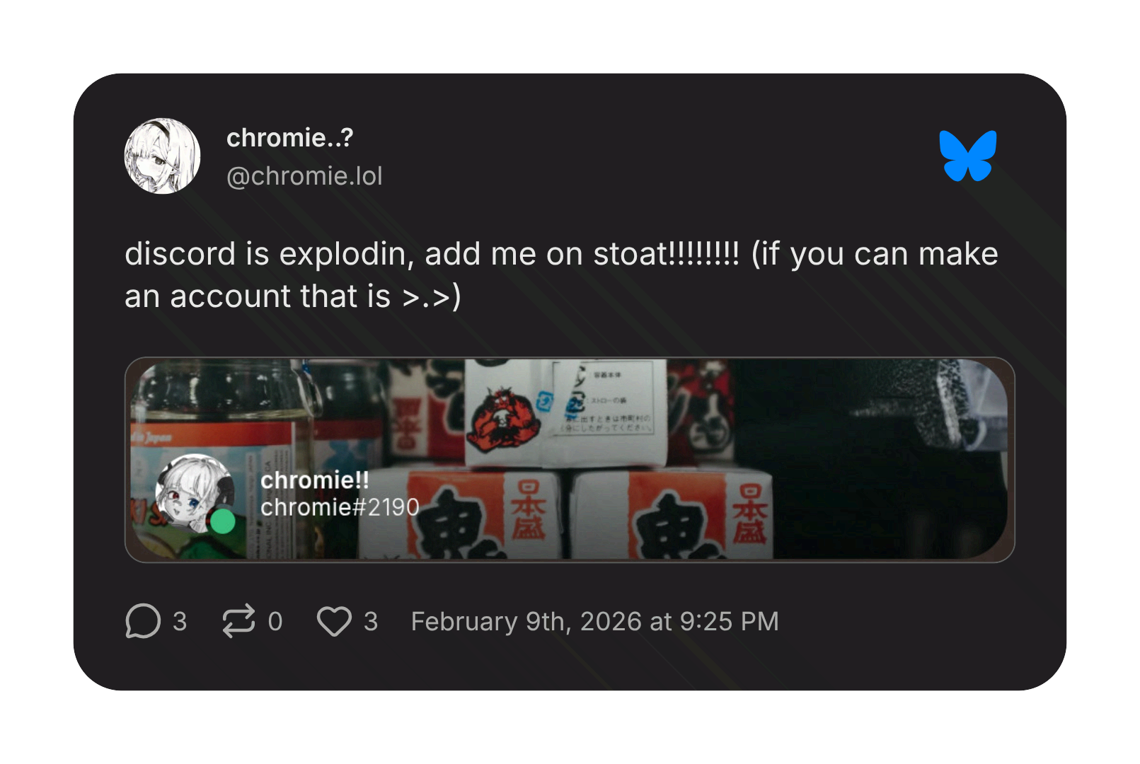 Please don't spam this Bluesky/Stoat user's inbox...